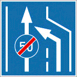 Einde rijstrook met minimumsnelheid: Bij dit bord mag je weer terug op de (hoofd)rijbaan, er geldt nu immers geen minimumsnelheid meer.